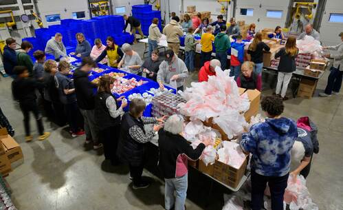 * The ladies say their favorite part of volunteering is the fast pace, camaraderie, knowing the food bags will help a lot of children, and the warm fuzzy feeling they get from helping others. (We LOVE this!)